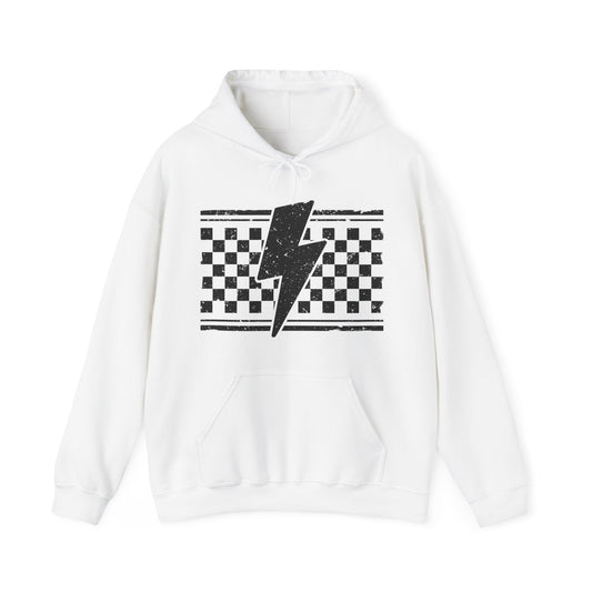 Grunge Checkered Lightening Bolt- Adult Hooded Sweatshirt