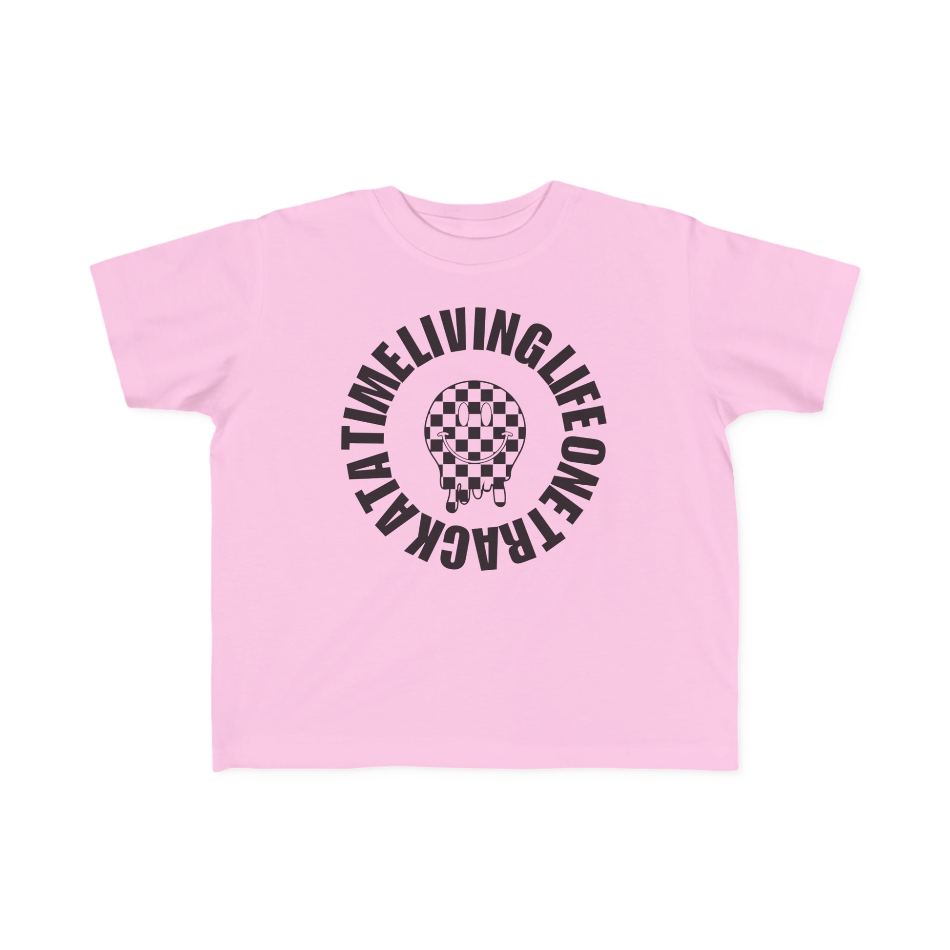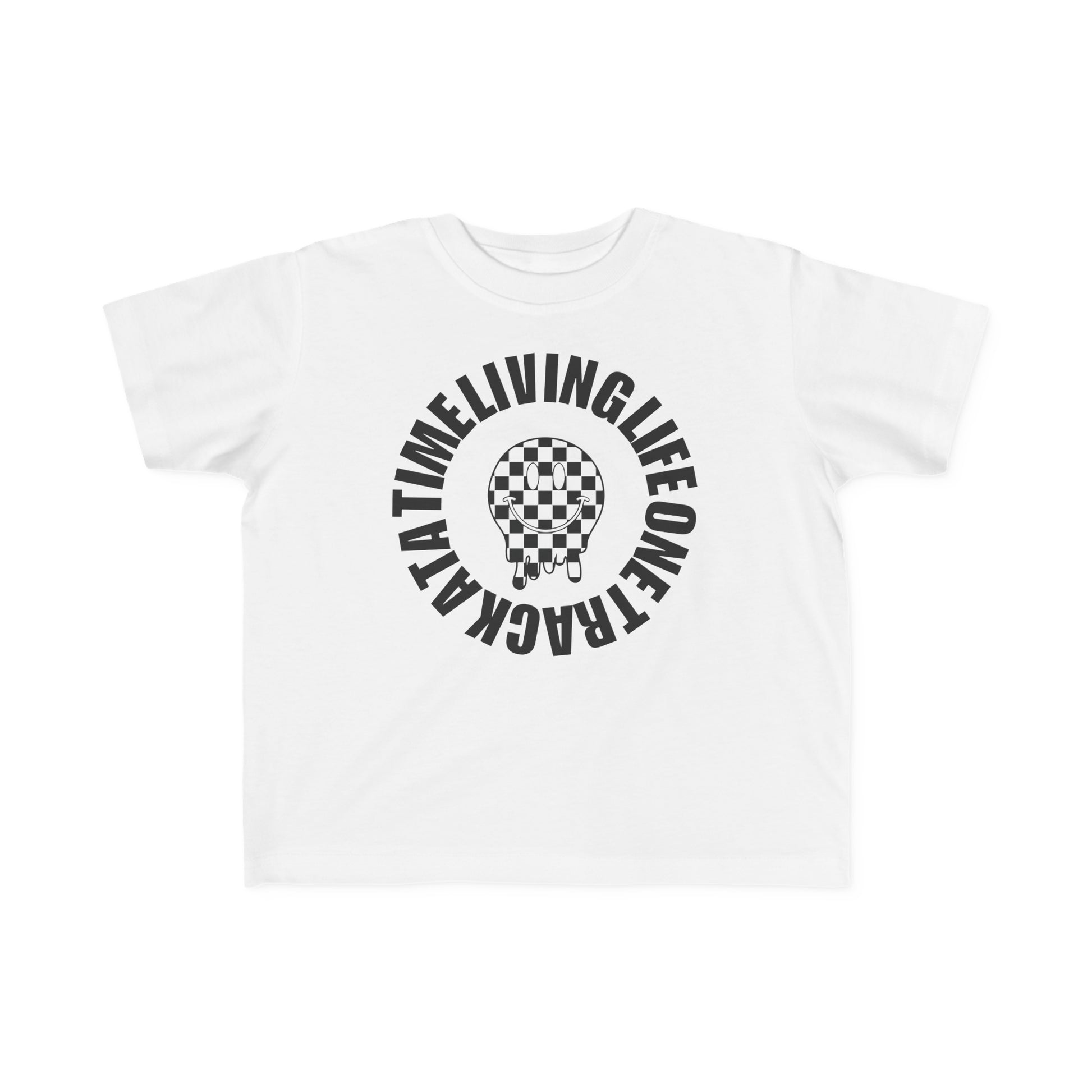 Living Life One Track At A Time Black Checkered Smiley - Toddler's T-Shirt